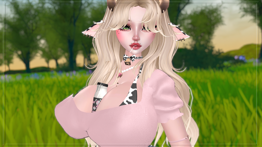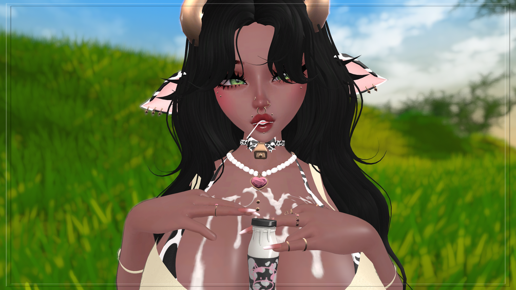 HEAD | BASE | HAIR | LASHES | FISHNETS | DRESS | SMALL TOP | SHORTS | SNEAKERS | BOTTLE | WAIST CHAIN | NAILS | RINGS | HEELS | PLUSH | GARTER | CHOKER | NECKLACE | ARM STRAPS | COW SET | PIERCINGS | LOLLIPOP | BIKINI | PUBES | SOCKS | LOCOMOTION | MATCAPS | BASE TEX | NIPPLE TEX | EXPRESSIONS | HAIR TEXTURES | FACE TEXTURE | EYE TEXTURE | SLAP SOUND | HEART PARTICLES | INDEX GESTURES | HEART GESTURE | STRETCH MARKS | MILK PARTICLES | BLINKING